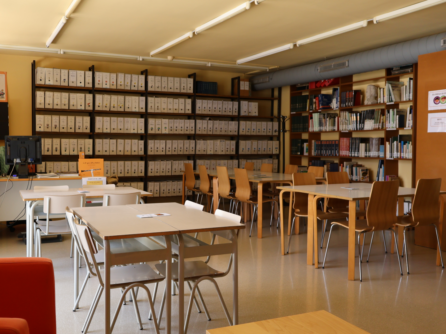 Està situada en un lateral del pati del centre i té accés des d'aquest o des d'un dels passadissos. La nostra biblioteca és petita i acollidora.